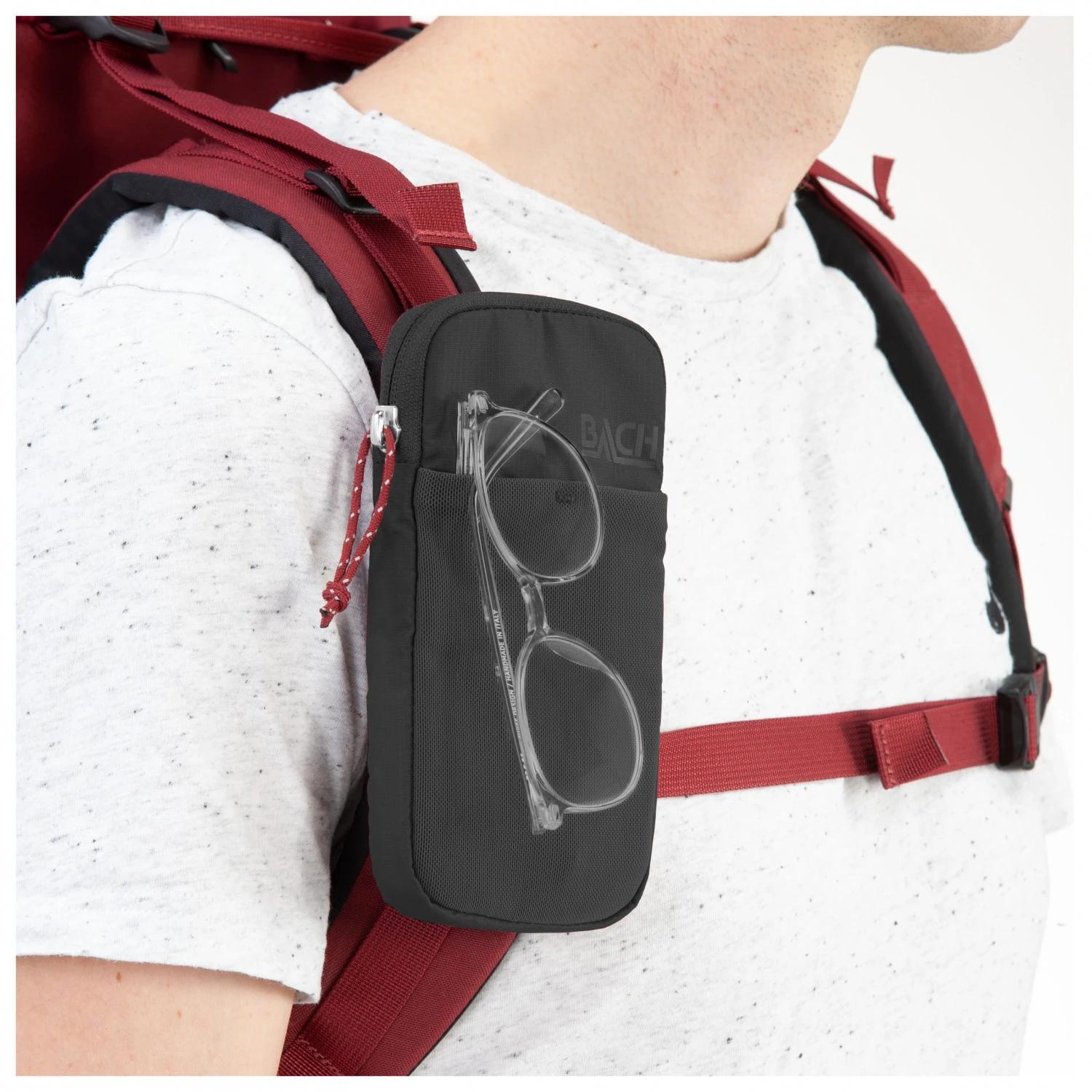 Ob Handy, Schlüssel oder Sonnenbrille – mit der Pocket Shoulder Padded von Bach hast Du die wichtigen Dinge unterwegs immer griffbereit! Die kompakte Schultertasche besteht aus strapazierfähigem Cordura Gewebe und ist vollständig gepolstert, wodurch sie bequem auf den Schulterträgern aufliegt. Die Tasche wird mit zwei Schnallen und einem elastischen Gurtband am Rucksack befestigt und bietet leicht zugänglichen Stauraum für Kleinkram aller Art.