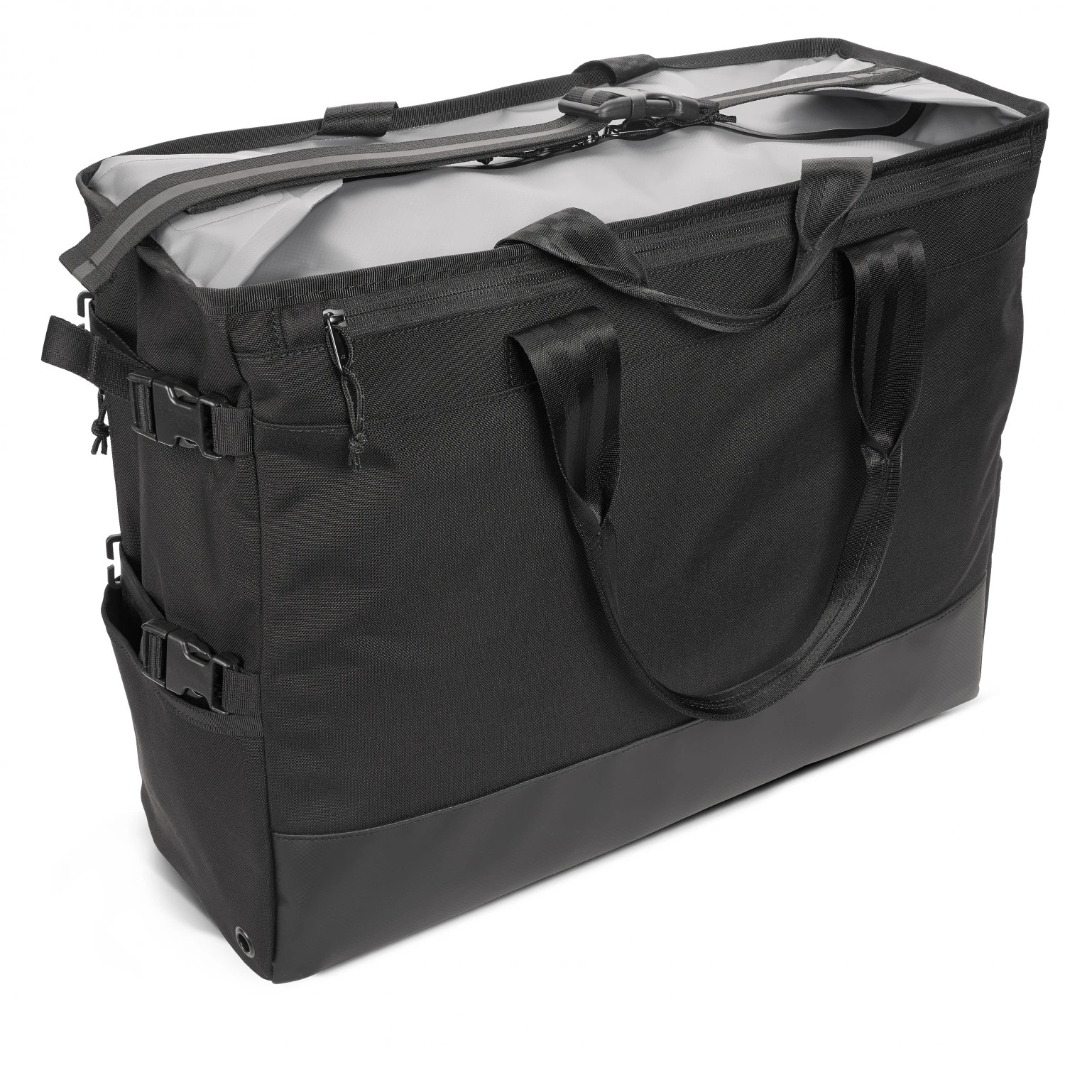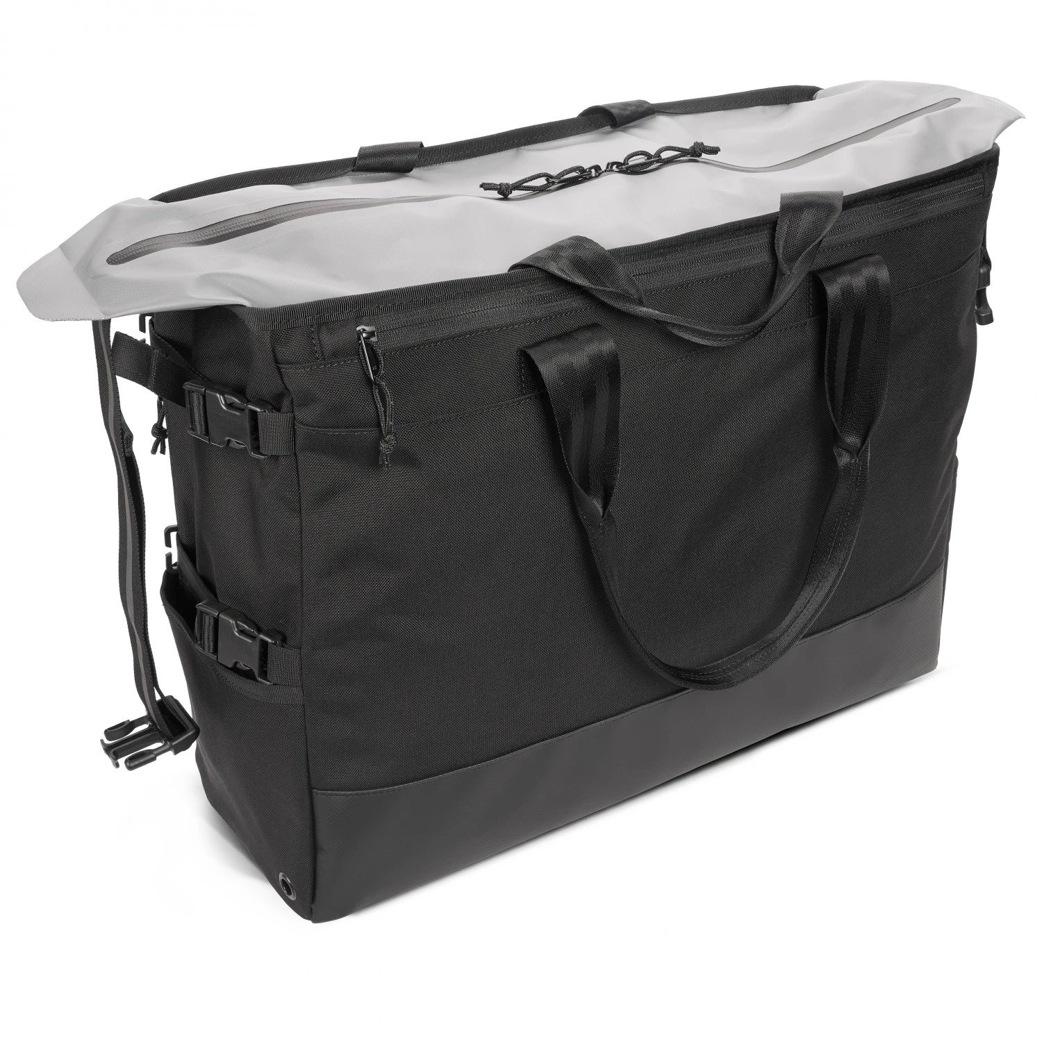 Im kultigen Upcycling-Design besticht die Tasche mit futuristischem Style und minimalistischem Charme. Sie ist handgepäcktauglich und kommt mit praktischem Rollverschluss. Die Umhängebänder können über der Schulter getragen oder als Tragegurt eingesetzt werden. Mit wasserdichter und abriebfester Nylonhülle mit TPE-Beschichtung trotzt die Tasche Wind und Wetter. Die Seitentaschen mit Reißverschluss geben schnellen Zugriff auf Handy und Geldbörse. In dem individuell einstellbaren externen 5-Punkt-Frachtnetzsystem können Kartons und andere sperrige Teile außerhalb der Tasche aufbewahrt werden.