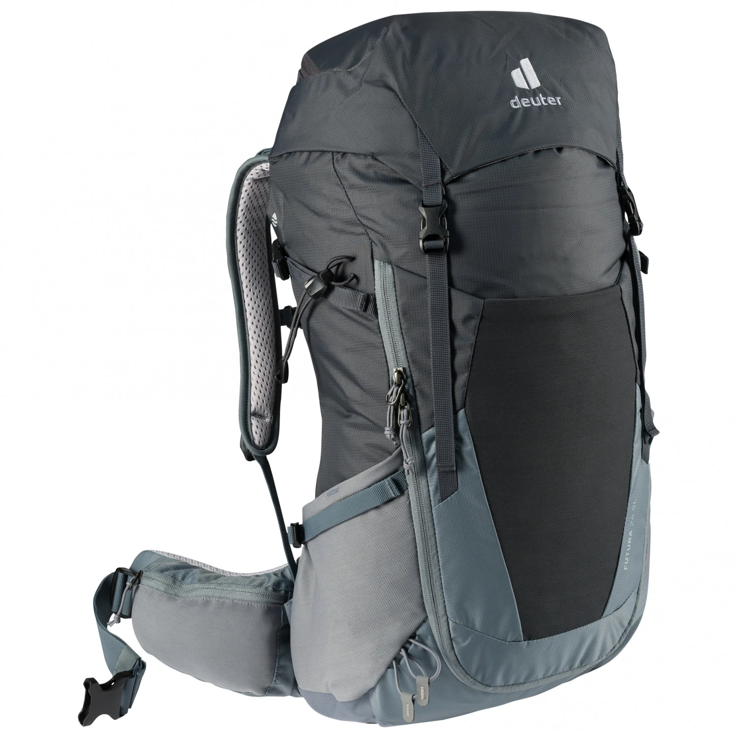 Die BelĂĽftung des Women’s Futura 24 SL Wanderrucksacks von Deuter macht den Rucksack zu einem optimalen Begleiter, wenn es um Wanderungen bei schweiĂźtreibenden Bedingungen geht. Die weichen und gemĂĽtlichen Träger des Rucksacks liegen auch bei stundenlangen Einsätzen angenehm fest am RĂĽcken, den Schultern und auf der HĂĽfte. Die Schulterträger sind beweglich und passen sich so den Bewegungen der Trägerin an. Stöcke und auch ein Helm lassen sich an der AuĂźenseite des Rucksacks befestigen. Um schnell und einfach an das Innenleben des Wander-Rucksacks zu gelangen, ist er mit einer Frontöffnung versehen. Sie lässt sich mit einem ReiĂźverschluss erreichen. Wertsachen und Kleinigkeiten finden in einem sicheren Innenfach einen Aufbewahrungsort. Zudem ist der Rucksack mit einem SOS-Label ausgestattet, welches die richtige Vorgehensweise fĂĽr den Fall eines Unfalls erklärt.