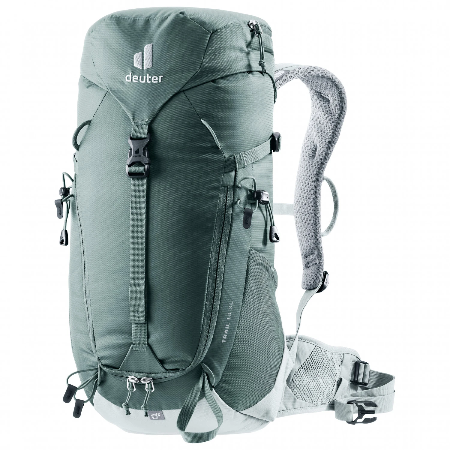 Die Hüftflossen und der Brustgurt lassen sich zum Klettern abnehmen. Deine Wanderstöcke oder der Eispickel lassen sich bequem außen am Tourenrucksack anbringen. Zwei elastische Seitentaschen bieten Dir Platz für Trinkflaschen oder Ausrüstung. Seitliche Kompressionsriemen sowie ein Wertsachenfach im Inneren lassen keine Wünsche offen. Die abnehmbare Regenhülle, ein integriertes SOS-Label sowie das abnehmbare Deckelfach machen den Deuter Women’s Trail 16 SL zum idealen Begleiter am Berg.