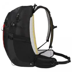 Der 28 Liter Rucksack bietet ausreichend Platz für Dein Gepäck über den Tag. In einem großen Hauptfach sowie Außentaschen mit Reißverschlüssen lassen sich Proviant und Kleinkram verstauen. Mit der seitlichen Halterung sind die Trekkingstöcke sicher befestigt, sodass Du Deine Hände bei Kletterpassagen frei hast. Gut gepolsterte Träger verteilen das Gewicht, gemeinsam mit dem Hüftgurt, gleichmäßig auf den Oberkörper. Bei Regen ist der Regenschutz schnell über den Rucksack gezogen.