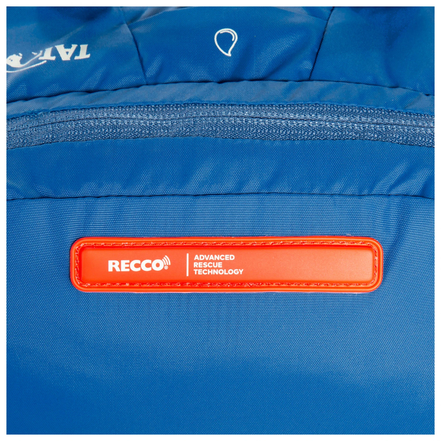 In den seitlichen Netztaschen und im Deckelfach kannst Du Snacks und allerlei Krimskrams verstauen. Praktisch ist außerdem die Halterung für Wanderstöcke und die integrierte Regenhülle. Im Deckelfach ist ein Recco-Reflektor eingenäht. Der Transponder sendet im Notfall Signale an die Bergretter. Ganz ohne Strom.