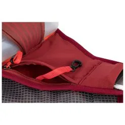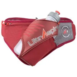 Flüssigkeit, Snacks, Laufjacke und Z-Poles können minimalistisch verstaut werden. Das Gewicht des Inhalts wird gleichmäßig verteilt, damit man zügig vorwärts kommt, ohne dass alles hin und her wackelt. Die konische Gürtelform (oben vom Umfang her etwas geringer als unten) verbessert die Passform, damit die Hüfttasche gut anliegt. Weitere Details wie das atmungsaktive Mesh-Material am Gurt, die Kordelzüge vorne und die mitgelieferte UltraFlask 550 Hybrid Bottle runden das Gesamtpaket ab.