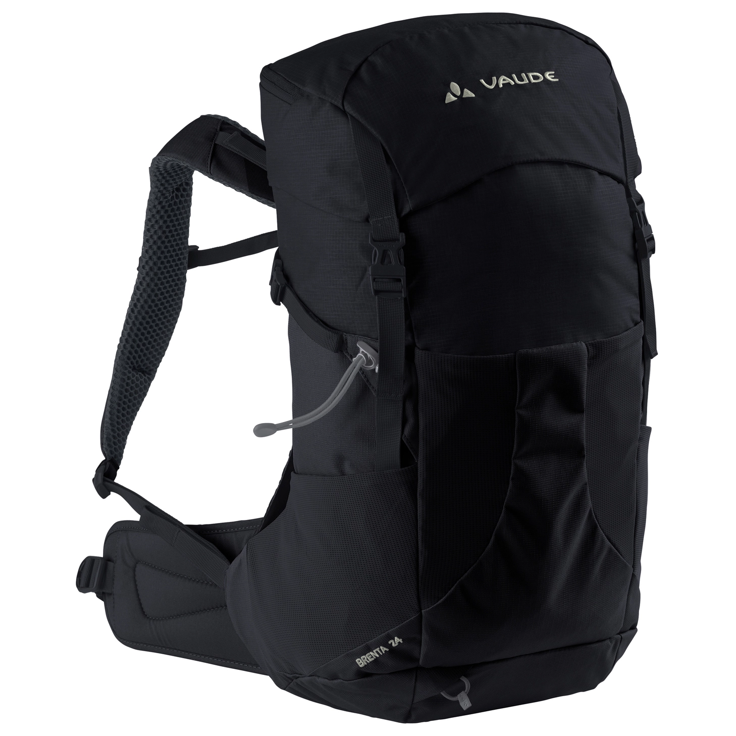 Auf Wandertour oder Reisen alles bestens geschultert mit dem Brenta 24 von Vaude! Der Wanderrucksack ist aus einem stark widerstandsfähigen, zum Teil aus recycelten Rohstoffen gefertigten Gewebe gefertigt, das dank umweltschonender und langanhaltender Eco Finish DWR stark wasserabweisend ist. Das Hauptfach fasst 24 Liter und wird durch eine Zip-Tasche an der Außen- und Innenseite des Deckels, einer Smartphone-Stecktasche sowie elastischen Front und Seitentaschen ergänzt. Praktische Kompressionsriemen halten den vollen Rucksack in Form.